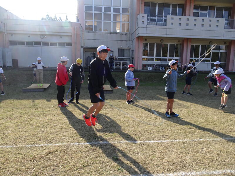 また、他学年が走っている間には、縄跳びの練習をしています。走っている人が運動場に入ってくるとみんなで「あと少し」「がんばれ」など、大きな応援の声が鳴り響きます。その声に後押しされみんなゴールすることができました。
