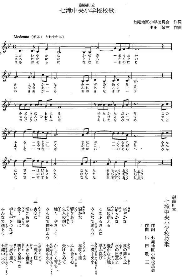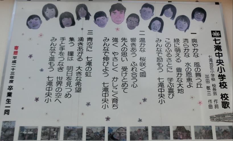 七滝中央小は、すばらしい自然・文化・歴史・伝統・人材に恵まれた校区です。子ども達には、校区のことをよく学び、文化や伝統を受け継ぐとともに、御船町、七滝校区の未来を切り拓いていってくれることを期待しています。地域の方々の期待に応え、日々学び成長して欲しいと思っています。