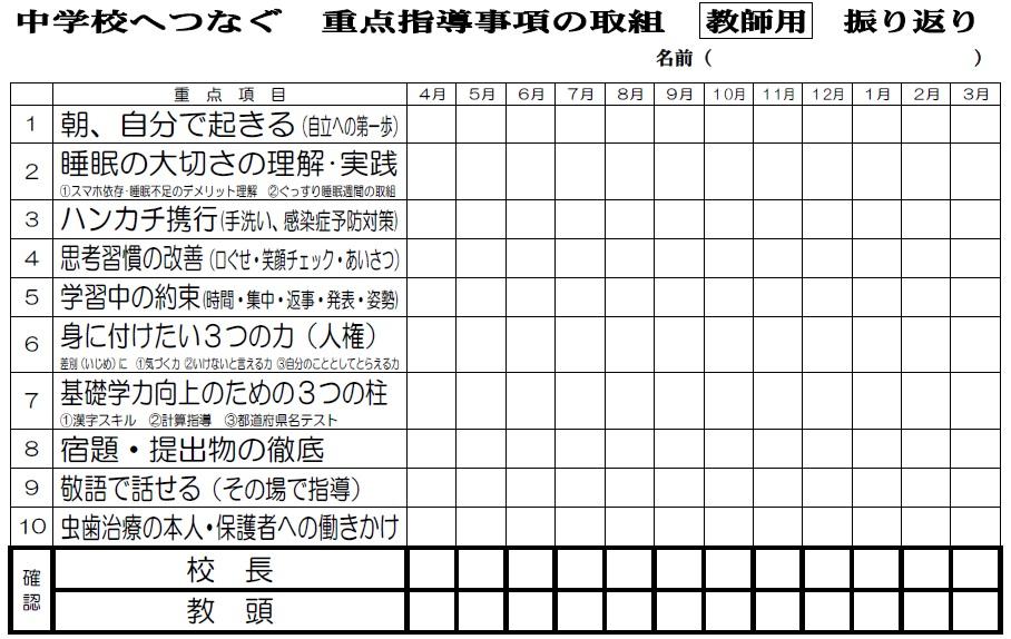 中学校へつなぐ重点指導項目