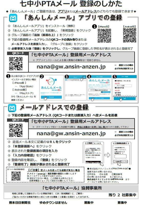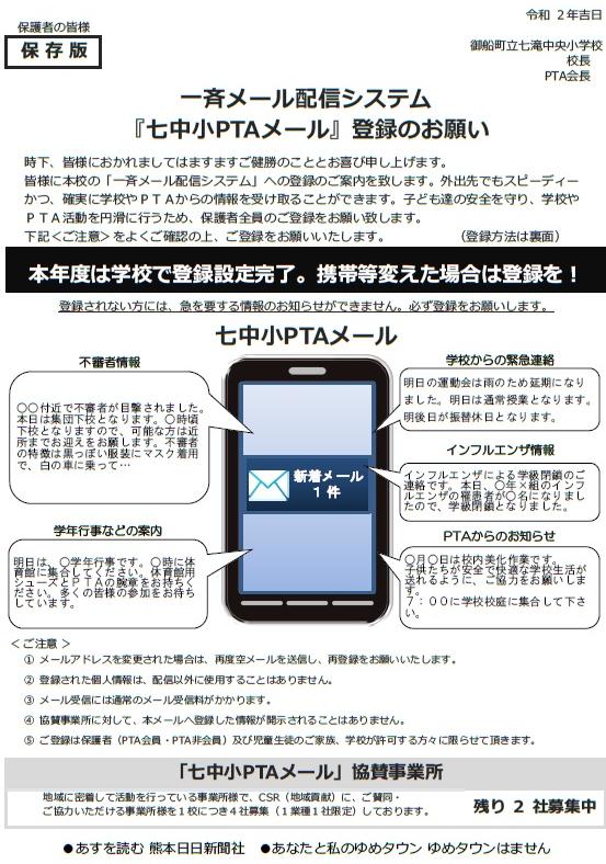 保護者への緊急かつ重要な連絡は「安心メール」を活用しております。