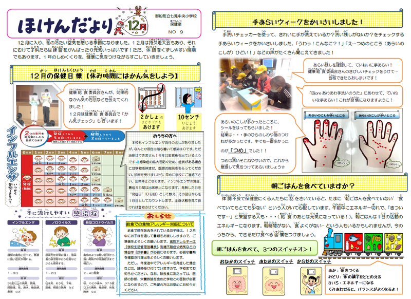 12月に入り、本校でもインフルエンザなどの感染症が心配されました。