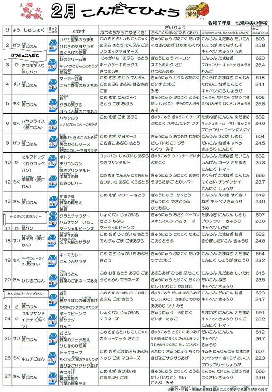 今日のメニュー :今週は学校給食週間の特別献立です。