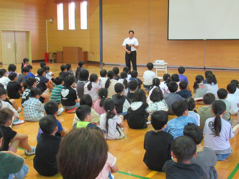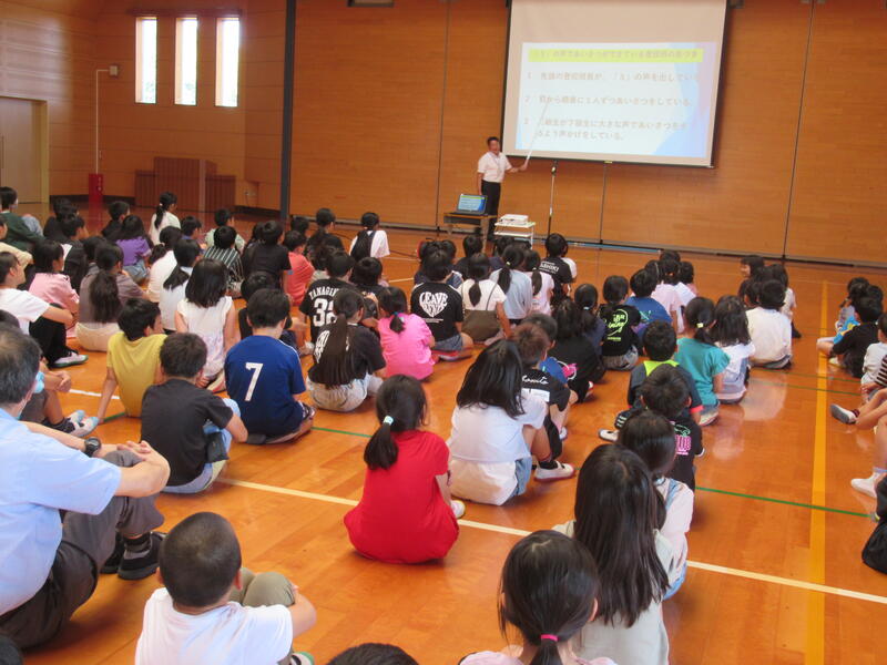 10月10日(金)、前期終業式を行いました。めざす子どもの姿とスローガンを確認した後、相手にはっきり届く声の大きさ(「3」の声の大きさ)であいさつができるようにということ、トイレのスリッパ並べのことなど、後期にがんばってほしいことを確認しました。子どもたちの真剣な眼差しが印象的でした。