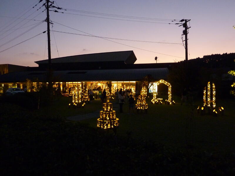 10月8日(水)【トッパの日】に、標記の記念式典及びイベントが開催されました。町内小中学生による「10年後の南関町」について発表する場もあり、本校の子供たちは、事前学習をしてまとめたアイデアを堂々と発表することができました。17時45分からは、「ukara」のグランドーオープンセレモニーが開かれ、テープカットの後、竹あかりが灯されました。本校からは、竹あかりイベントにも多くの児童が参加していましたが、トッパ丸とくまモンが登場したときには大盛り上がりでした。