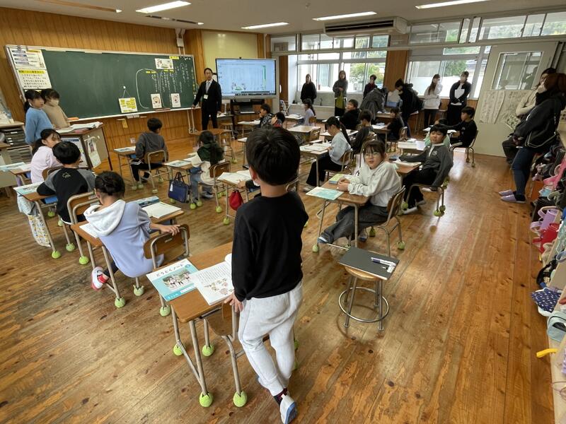 今日は四年生の理科と通級指導教室で公開授業が行われました。