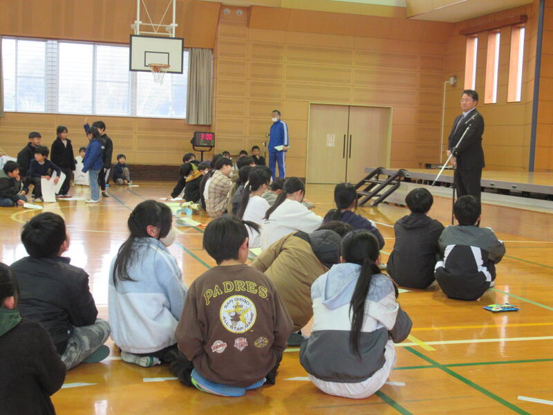 2月24日(火)に、来年度の入学予定児童12名と保護者の方をお迎えし、「体験入学」を行いました。新入生は現1年生と交流、保護者の方は入学に向けた教育委員会・学校等からの説明、新登校班の確認及び顔合わせという内容で実施しました。帰りは、新登校班で下校し、通学路の確認をしていただきました。