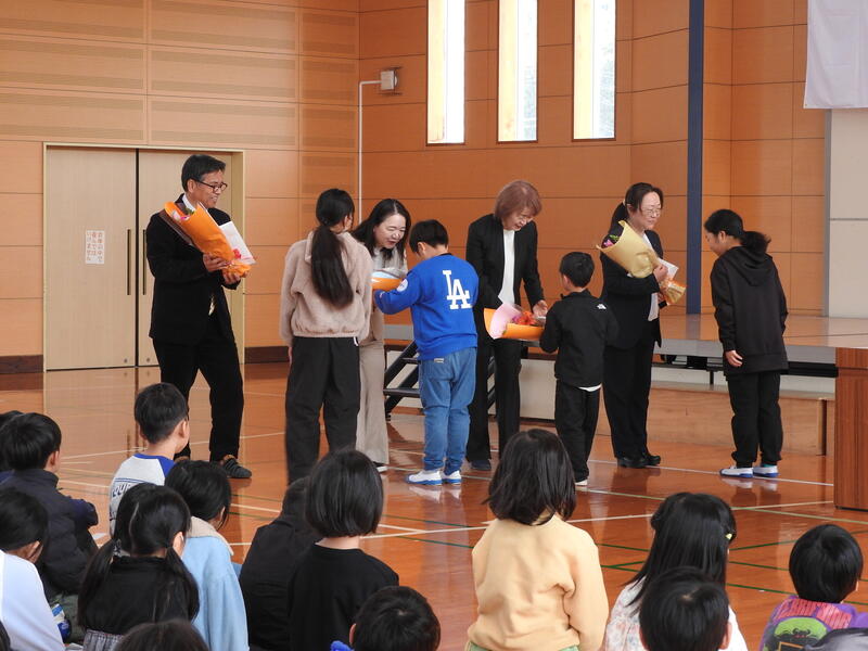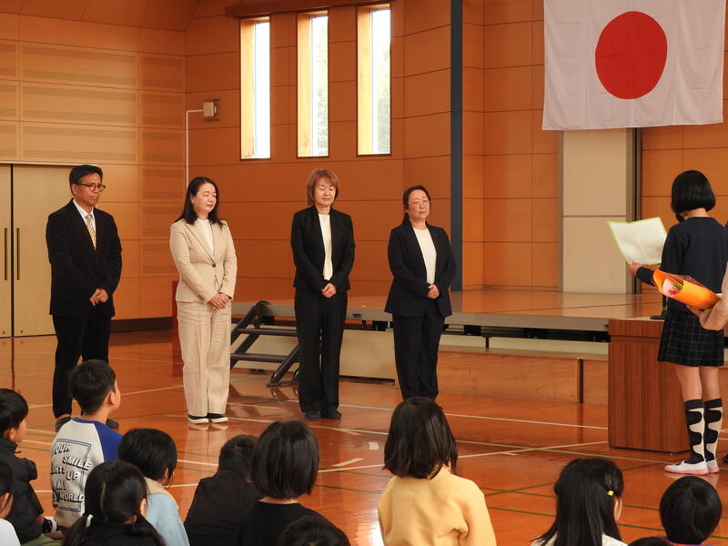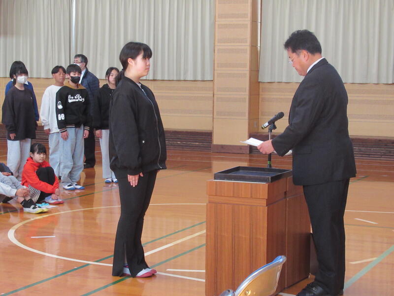 3月23日(月)、修了式を行いました。各学年代表による1年間をふり返っての作文発表の後、各学年の代表児童に「修了証」を渡しました。校長講話では、修了式の意義や目的確認し、気持ち新たに4月の始業式を迎えてほしいという話をしました。この1年間無欠席だった児童が12名いました。改めて、強い体と心を育てていきたいと思ったところでした。