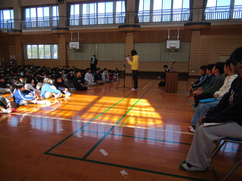 12月24日(水)に、冬休み前集会を行いました。後期始業式の時にお願いしていたことがどれくらい達成できたか、後期前半を振り返ったり、冬休みのくらして気をつけてほしいこと、お願いしたいことなどについて話題にしていきました。生徒指導担当者から、養護教諭からの話を聞きながら、安全で、健康的な冬休みになることを願った集会でした。