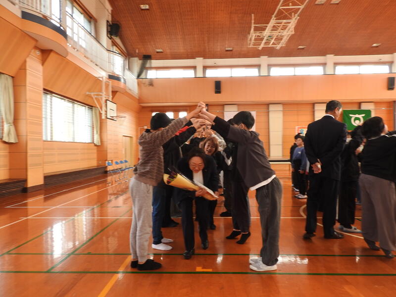 3月27日(金)、今月末をもって本校を去られる4名の先生方とのお別れの式を行いました。毎年のことですが、寂しい限りです。転出される4名の先生方の新天地でのご活躍を祈念しています。