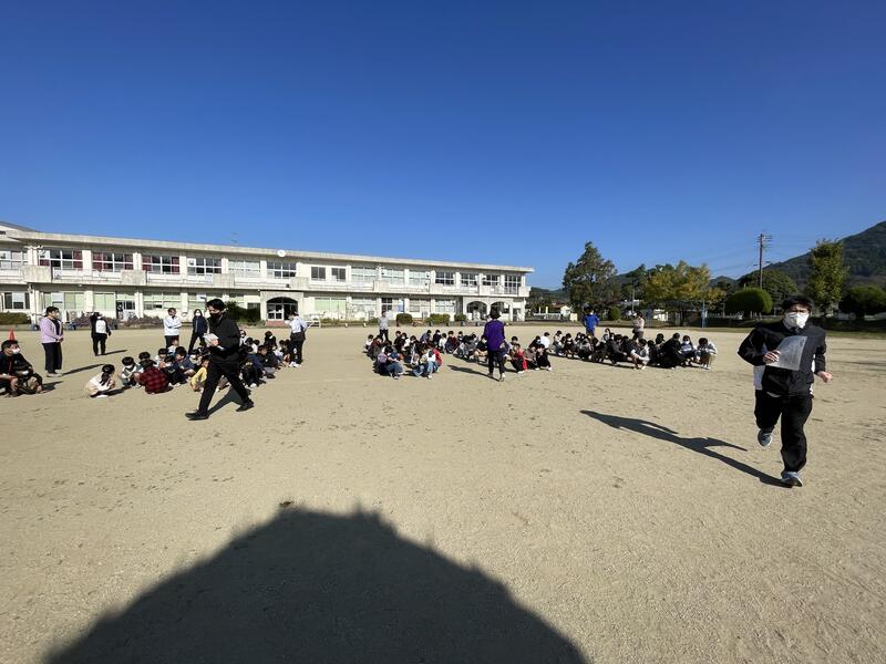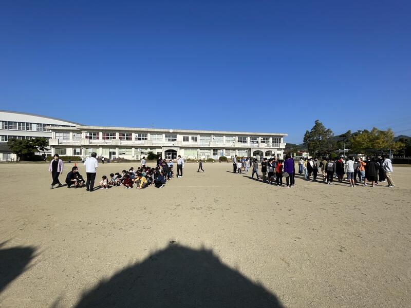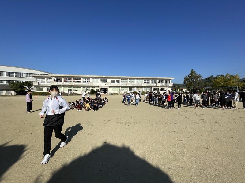 避難開始から2分29秒で全員が運動場に避難することができました。