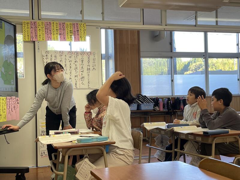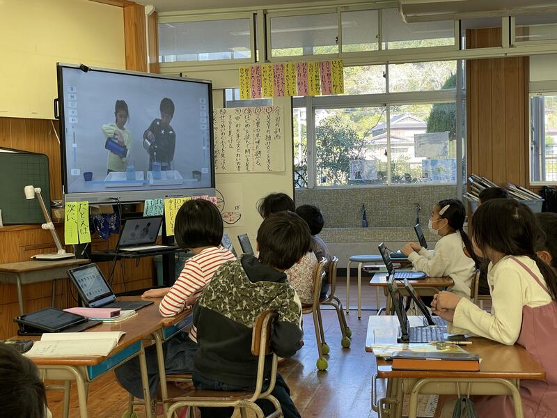 3年生は国語の授業で学校の自慢を発表し合いました。