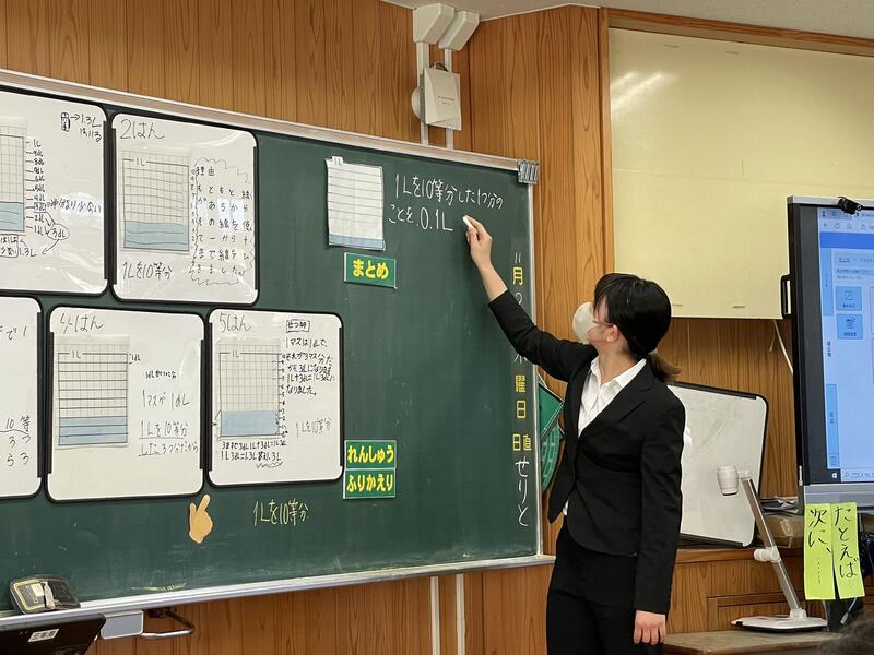 みんなで「1Lより少ないかさをLであらわす方法」について考えました。