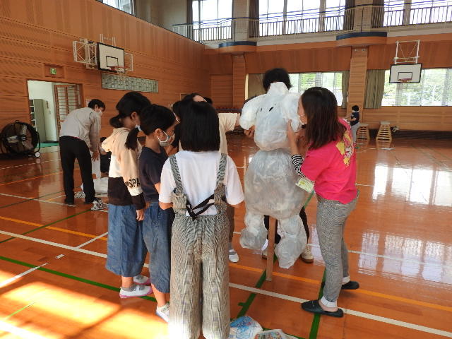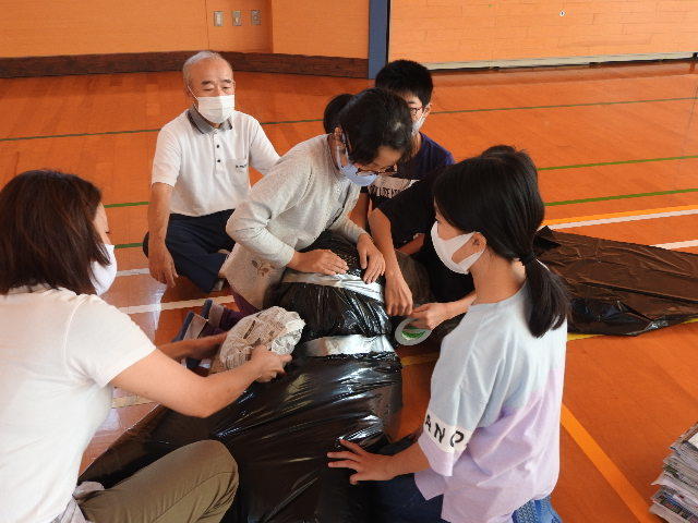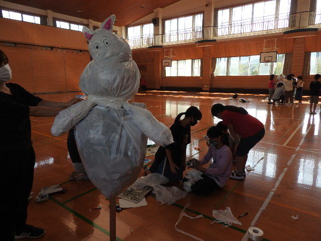 本日は、学校便りや学級通信、10月行事予定(HPにアップ)にてお知らせしていましたとおり午前3時間授業でした。給食がありませんでしたので、この部屋で学校の様子(5年生のかかしつくり)を紹介します。