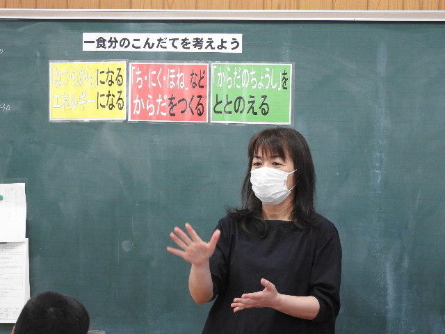 今日は、4時間目に6年生の家庭科の授業に、給食センターの栄養教諭三好先生をお招きして、一食分の献立を考える授業をしていただきました。給食にも、授業にも感謝!