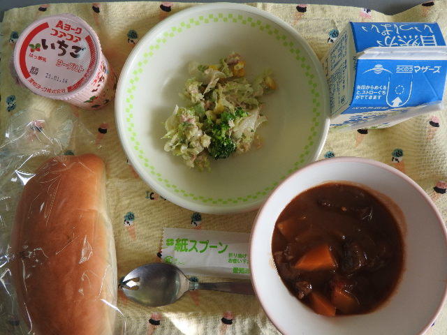 今日のメニューは、コッペパン、牛乳、ビーフシチュー、ブロッコリーとツナのサラダ、ヨーグルト 607㎉ タンパク質22.7g ビーフシチューには、新型コロナウィルスの影響で食材が余り、生産者が困っているということで、熊本県より無料で提供していただいた牛肉が使われています。給食では使うことができない高級な牛肉です。(ほっかほっかニュースより)量も多かったような気がします。感謝とともに早く終息することを願います。そのためにも新しい生活様式の実践を進めていきましょう。今年は丑年。丑年は「耐える」「これから発展する前ぶれ・芽が出る」というような年になると言われています。今を耐え、コロナ前の日常を取り戻しましょう。