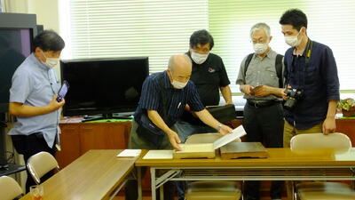 校長室の書庫には、北原白秋の自筆の本校校歌が納められています。大変貴重なもので、本校職員もまだ目にしたことがなかったです。