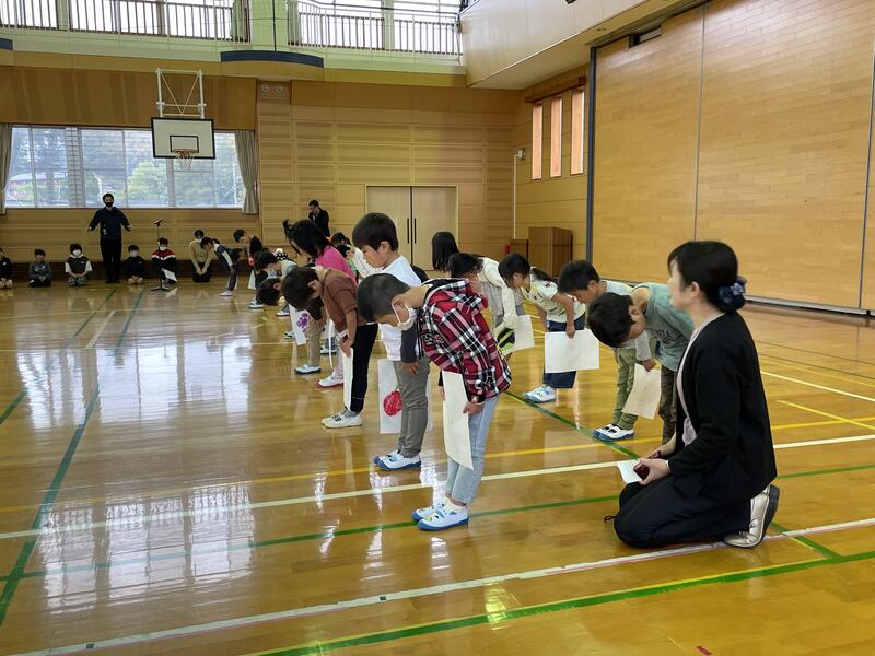お辞儀を深々と丁寧にしている子がいました。90°以上の子が何人もいます。この丁寧な気持ちを大切にしていきたいです。