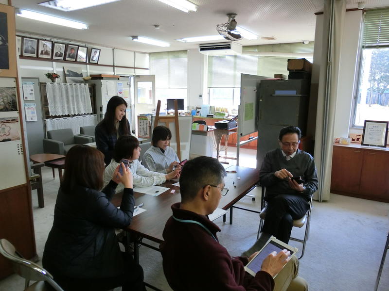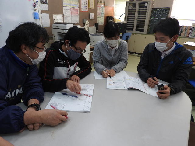 できるかぎり、休み中は学校からの情報をお届けしたいと思います。職員は、休業期間中、課題作りや5月7日の学校再開に向けての授業準備、研修等を進めています。画像は、昨日、職員室後方のテーブルで授業作り等を行っている様子です。