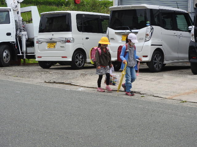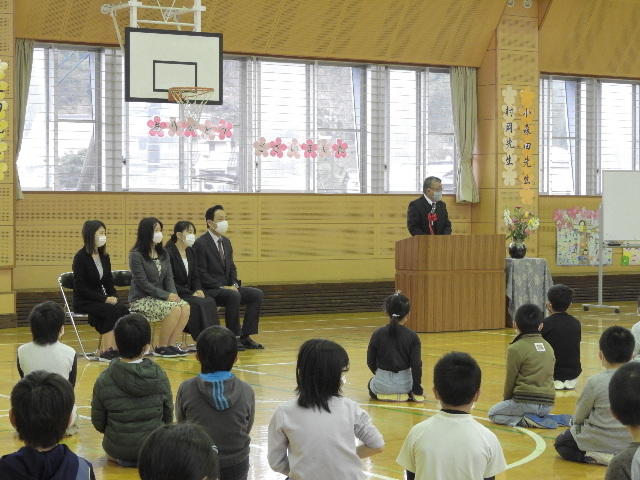 雨の中での登校となりましたが、子どもたちと一緒に4名の先生方とのお別れをすることができました。ありがとうございました。