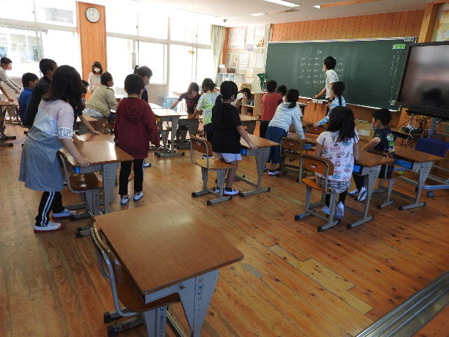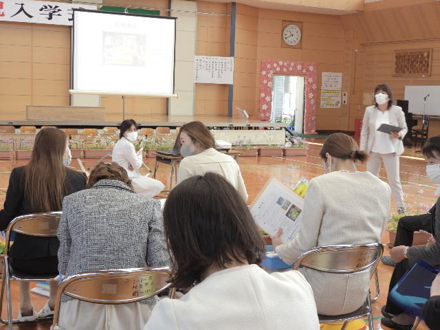 担任発表では、例年なら歓声が響く場面ですが、子どもたちは、大きな声を出してはいけないと思っていたのか、例年と違って静かな担任紹介でした。