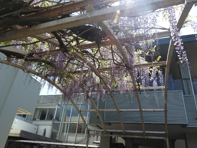 藤棚の画像です。校歌と風景(ドローン撮影)の上になわとびの動画をアップしています。ご覧ください。