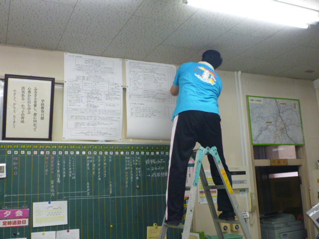 8:20~8:35まで朝会 9:00~12:05研修と職員会議