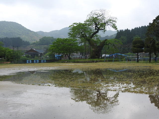 運動場の桜と大津山の画像です。もう一つは、土曜日の帰りに撮影した玉名市石貫(いしぬき)の桜です。