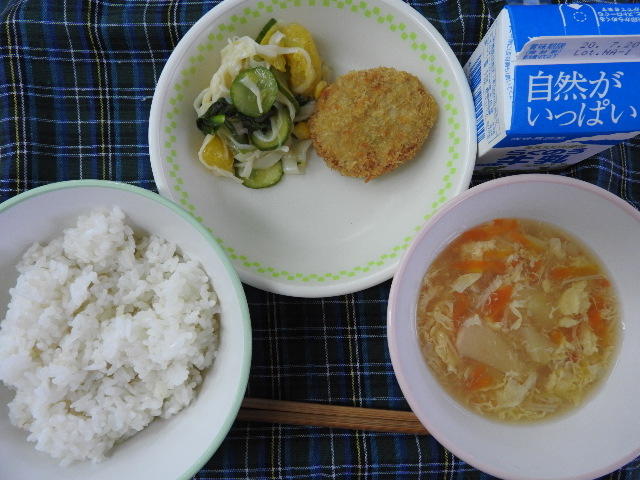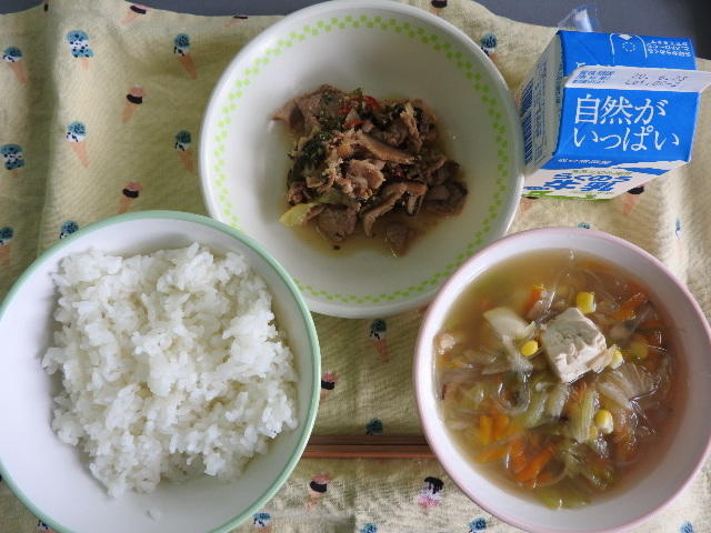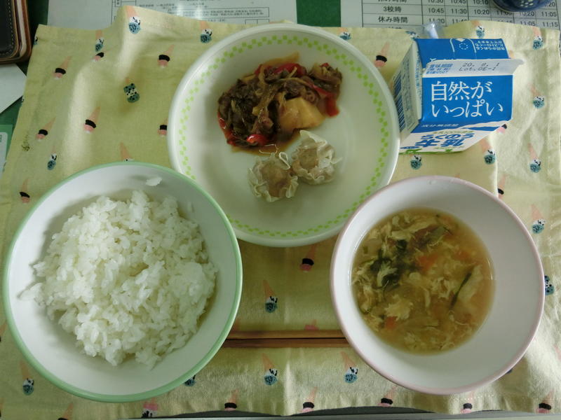 申し訳ありません。昨日アップすることができておりませんでした。21日(火)の給食は、ごはん、コーンと卵のスープ、シューマイ、チンジャオロース、牛乳(636カロリー、たんぱく質20.9g)でした。とてもおいしくいただきました。ごちそうさまでした。