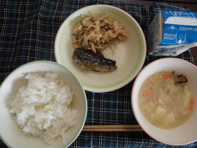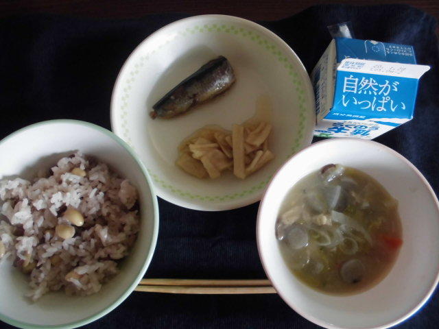 今日のメニューは、麦ごはん、具だくさんみそ汁、いわしの梅煮、大豆のかりんとう、牛乳 622㎉ タンパク質25.6g 本日は節分、明日は立春。暦の上では春ですが、しばらくは寒い日が続くことでしょう。しっかり食べて、かぜなどに負けない体に!給食に感謝