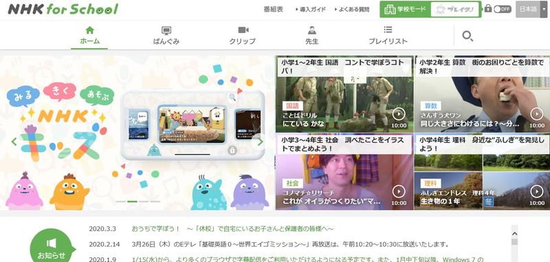 臨時休校となって3日目となります。感染拡大防止のためではありますが、子どもたちの生活に少しでも変化をもたせてあげたいと思いましたので、情報をいくつか紹介します。