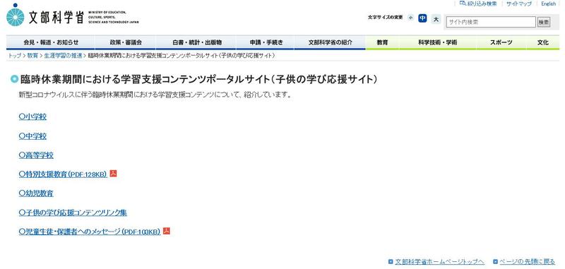 「臨時休業期間 学習支援」で検索するとアクセスできます。