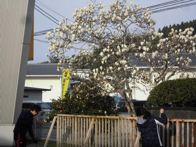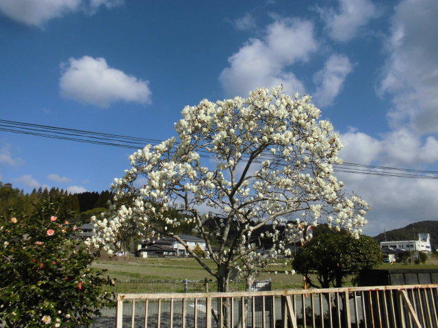 画像は、今日のハクモクレンです。子どもたちと会える16日まで咲いていてほしいと思います。