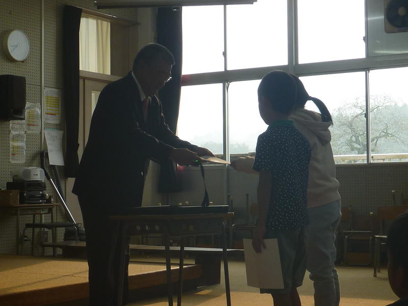 朝の集会は、表彰集会でした。「南からの挑戦状」「町駅伝大会」「玉名荒尾図工美術展」「明るい絵画コンクール」の表彰をしました。