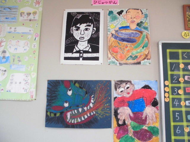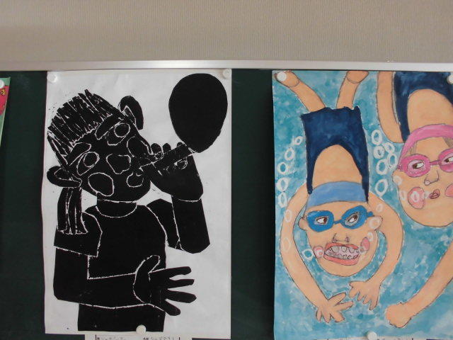 玉名荒尾教育会関係の作品展が終わり、校内の掲示物は絵画、版画、感想画等の作品が多く掲示されています。ちょっと遅めの芸術の秋といったところです。