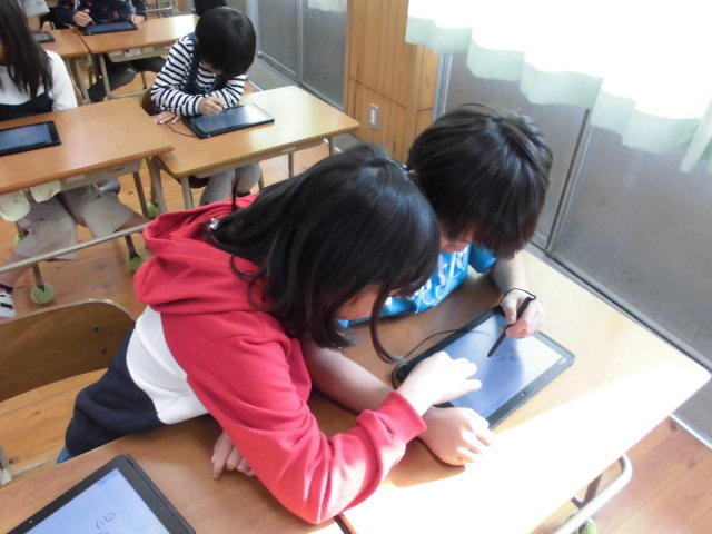 2年生が、1時間目国語のテストと2時間目算数テストの後に、タブレットを使ってドリル学習をしました。
