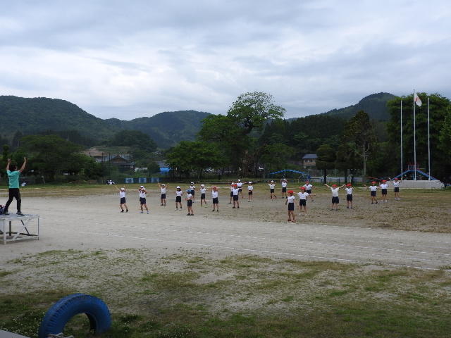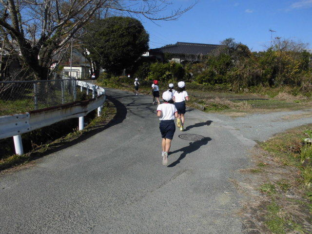 今日から朝ランがスタートしました。健康観察、準備運動の後、WANIMAの曲に乗って元気に、ランニングをしていました。