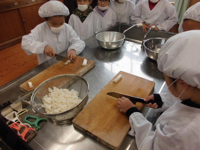 1時間目に、2年生が種から育ててきた大根を使って「大根スープ」を作っていました。私たちもいただきましたが、とてもおいしく、冷えた体も心もぽかぽかになりました。