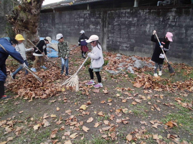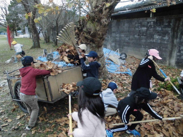 少し大げさなタイトルですが、朝からのボランティア「落ち葉集め」では、南先生の放送による呼びかけで、2年生がにこにこ顔で集まってきます。松葉かきの使い方がとても上手です。多分、同じ全国の2年生の中では、松葉かきの使い方はNO1かもしれません。1年生も参加してくれます。
