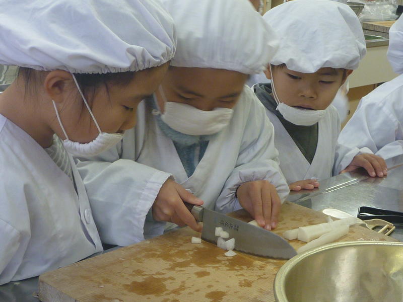 1年生が大根スープをつくりました。おいしい!温まる!みんな笑顔でした!