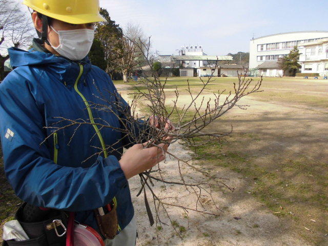 天然記念物や巨樹、銘木、絶滅危惧種などの林木遺伝資源を次世代に引き継ぐための「材木のジーンバンク事業」をご存じでしょうか。私も初めて知りました。本日、この事業を担当されている九州育種場より、本校のシンボルツリーであるムクノキの枝を採取に来られました。