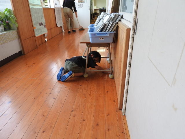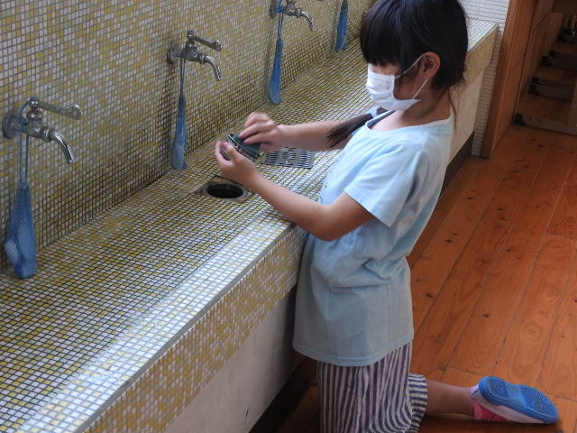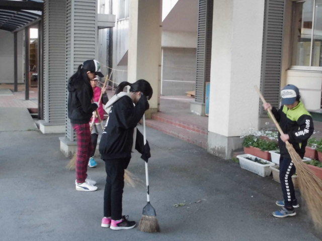 のランニングが終わったあとの、運動場への出入り口付近の様子です。ランニングが終わった後には、砂や土で汚れてしまします。体育委員会の活動を、朝ランニングだけで終わらず、その後の掃除までしていたのです。感心しました。