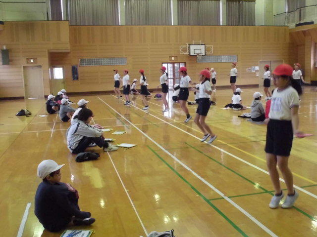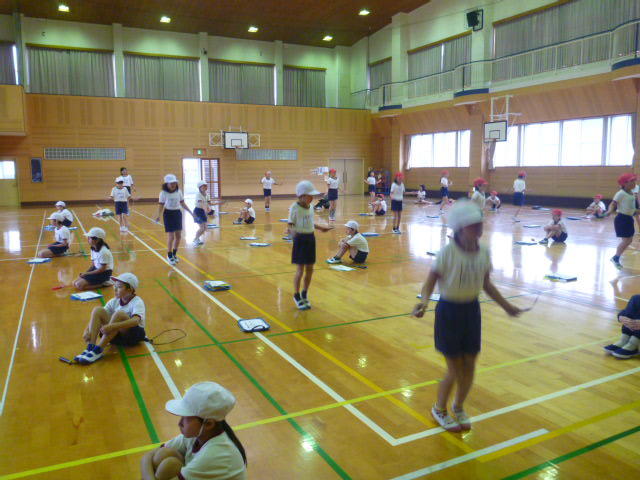 縄跳び大会を開催しました。2時間目2年生と5年生、3時間目1年生と6年生、4時間目3年生と4年生の組み合わせで実施しました。画像は、2年生、1年生、6年生、3年生、4年生、5年生の順です。