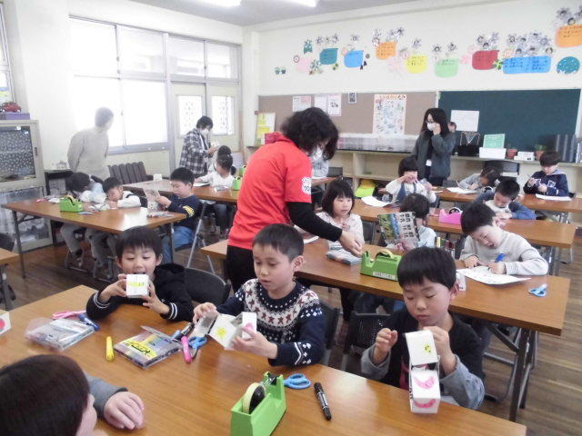 5年生が、家庭科(物を生かして住みやすく)で学んだことを実践しています。この実践を今後に生かしてくれることと、発想を広げてくれること(こんなことにも生かせそう)を期待します。