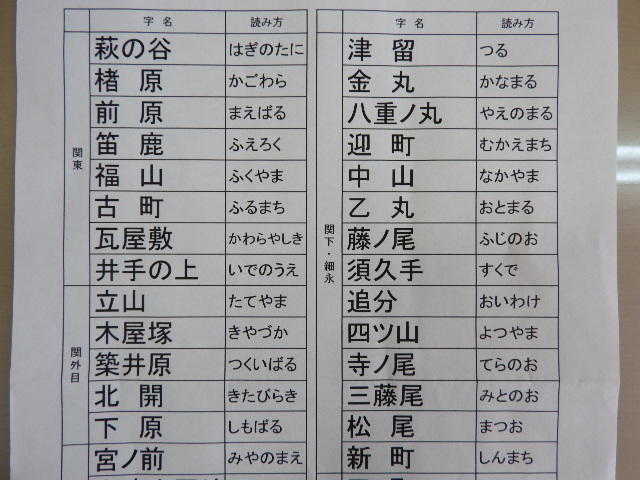 画像は、一小校区の地区名を漢字で書いた一覧表です。(抜けがありましたら、お知らせください)自分の地区はどこなのか?読み方は?地区名には、何か意味があるのでは?そんなことを考えながら、お子様と一緒に見てみてください。