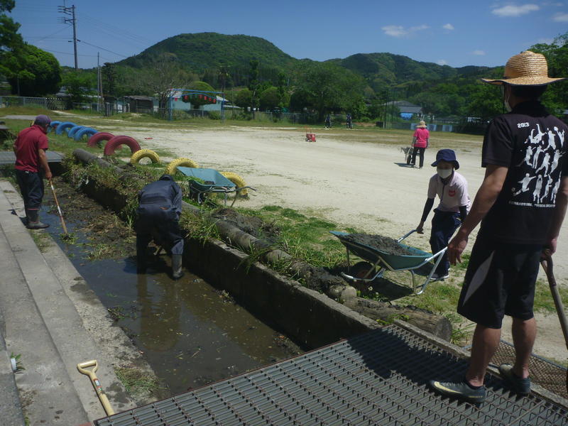 用水路にたまった土砂や草の除去作業をしました。疲れはしましたが、どじょうや川エビをみつけることができて、作業をしたかいがありました。