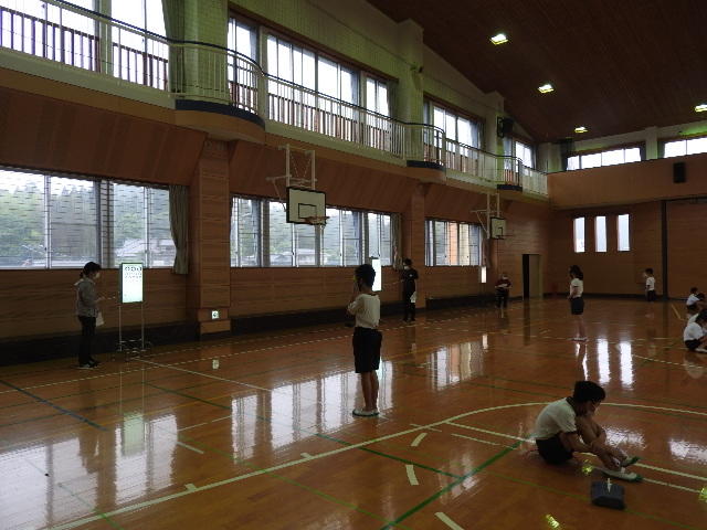 お隣とできるだけ間(1m)をあけてのグループ学習(5年生)
