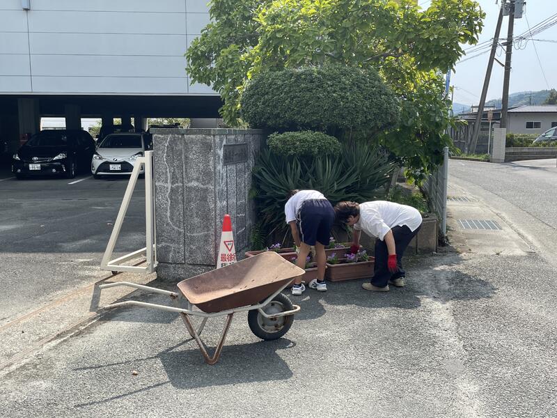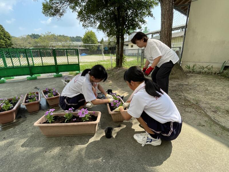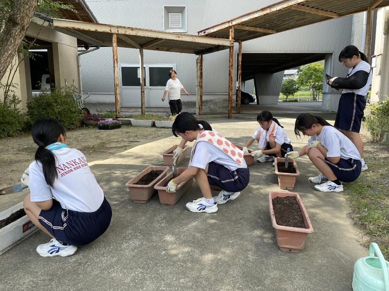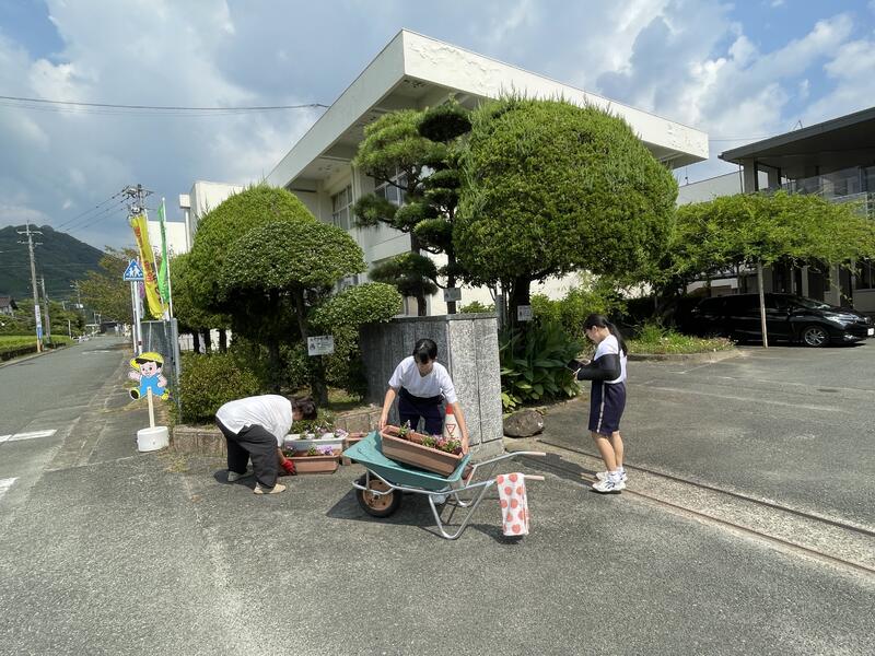 プランターに花の苗を植えたり、小学生のクラブ活動に参加してくれたりしました。