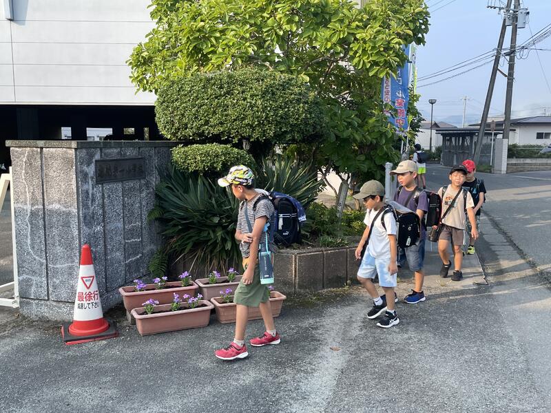 今朝は久しぶりの雨で長靴をはいて登校する児童もいました。