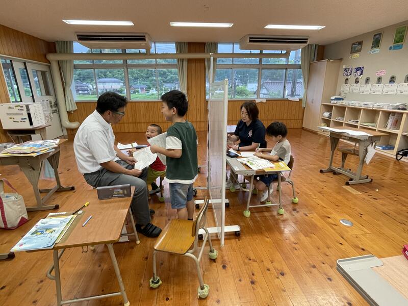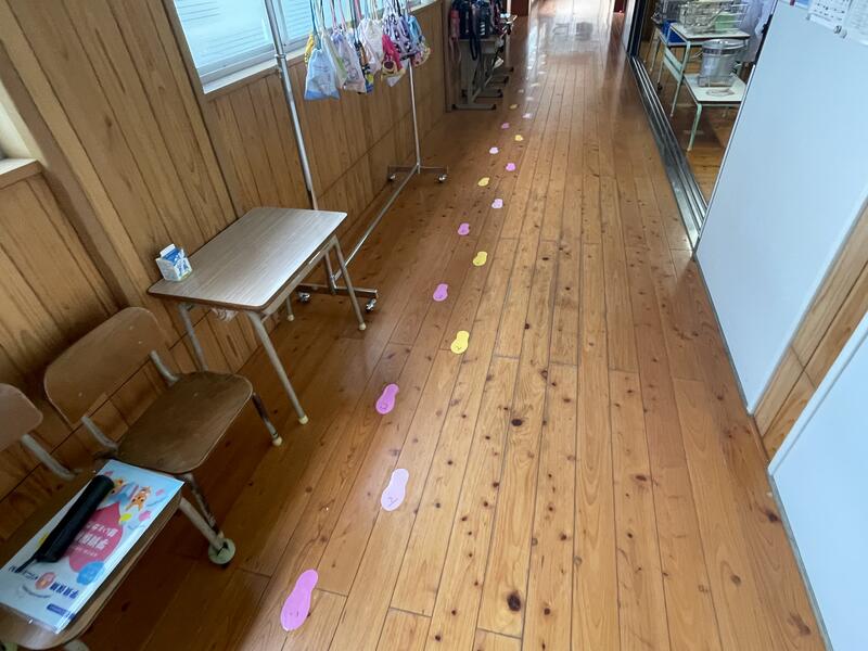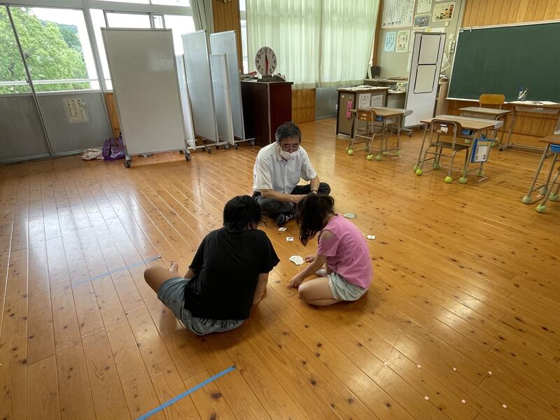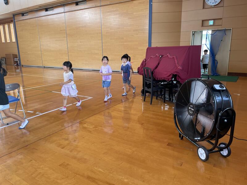 今回は天気や暑さのことを考慮して、室内で「じゃんけん列車」をして楽しみました。