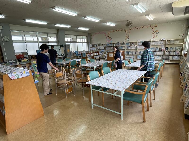図書室に「うから館」からいただいた椅子をならべました。